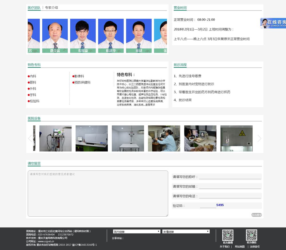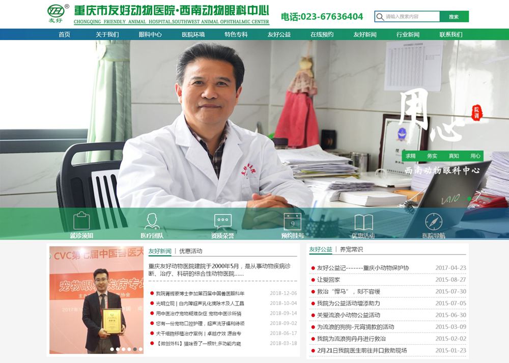 重慶市友好動(dòng)物醫(yī)院建院于2000年5月,是從事動(dòng)物疾病診斷、治療、科研的綜合性的動(dòng)物醫(yī)院。醫(yī)院位于江北區(qū)紅石路6號(hào)(紅旗河溝西站、建瑪特對(duì)面),營業(yè)面積800平方米,配置有全自動(dòng)生化分析儀、彩超、美國進(jìn)口CR、德國海涅眼科設(shè)備、進(jìn)口呼吸麻醉機(jī)、ICU監(jiān)護(hù)等先進(jìn)的診斷、治療儀器設(shè)備。醫(yī)院由著名的西南大學(xué)犬貓疾病學(xué)專家胥洪燦和從事臨床工作多年的主治醫(yī)師、具有數(shù)十年工作經(jīng)驗(yàn)的實(shí)驗(yàn)室診斷、影像學(xué)診斷的老專家組成醫(yī)療團(tuán)隊(duì)。在醫(yī)療團(tuán)隊(duì)中,具有高級(jí)職稱的占40%,取得碩士學(xué)位的占30%,執(zhí)業(yè)獸醫(yī)通過率100%。醫(yī)生定期到北京、上海、廣州甚至國外一流動(dòng)物醫(yī)院、大學(xué)進(jìn)行觀摩、交流、學(xué)習(xí),對(duì)提高醫(yī)院的整體技術(shù)水平取得了較大的成效。醫(yī)院遵照對(duì)待醫(yī)療技術(shù)科學(xué)嚴(yán)謹(jǐn), 對(duì)待病患細(xì)致縝密 ,對(duì)待客戶熱情周到的工作原則。