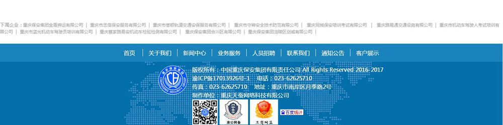 集團(tuán)公司業(yè)務(wù)范圍:為重慶市黨政機(jī)關(guān)、水、電、氣、通訊、教育、醫(yī)療、軌道、機(jī)場、大型商場等關(guān)系國計民生的重點(diǎn)要害部位提供保安服務(wù)和治安巡邏。并從事機(jī)動車號牌生產(chǎn)、駕駛?cè)丝荚嚺嘤?xùn)、機(jī)動車檢驗檢測、保安人員考試培訓(xùn)等業(yè)務(wù)。