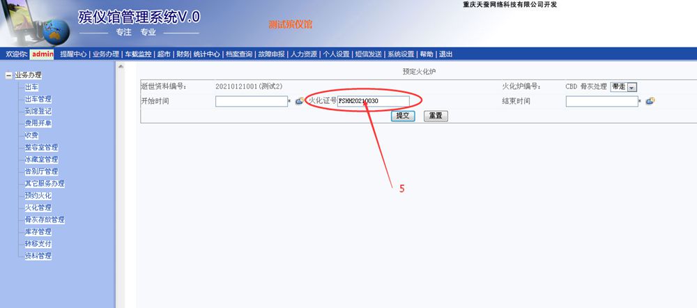 我們只需要將剛火化的業(yè)務,在結束時,產生的火化證編號修改成釋放出來的編號就可以了。如何添加火化證編號呢?詳細步驟如下: